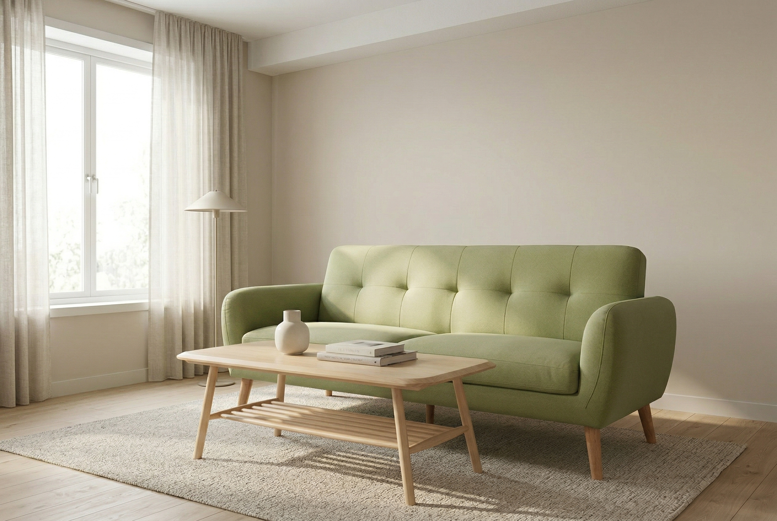 GREEN HOUSE綠屋家居的實木家具正是依循此邏輯,透過低飽和色的軟裝搭配,如米色、淺灰或淡藍,讓家具成為光的引導者。