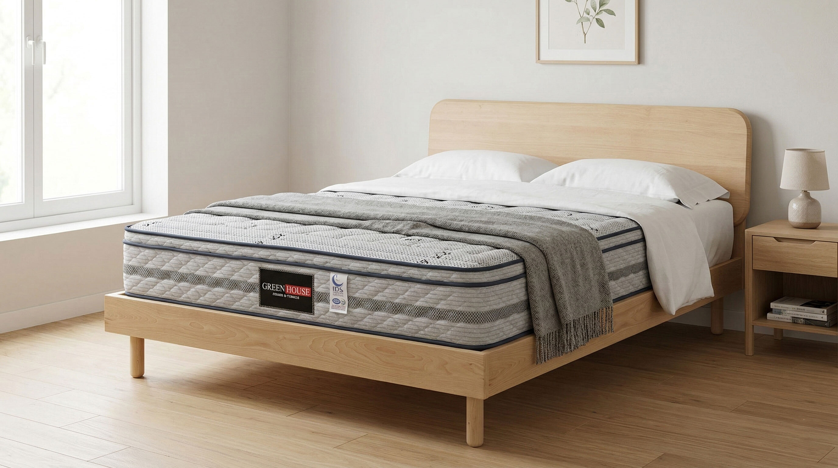 轉入臥室,莫恩與莫亞實木床架延續了GREEN HOUSE綠屋家居對靜謐生活的追求。
