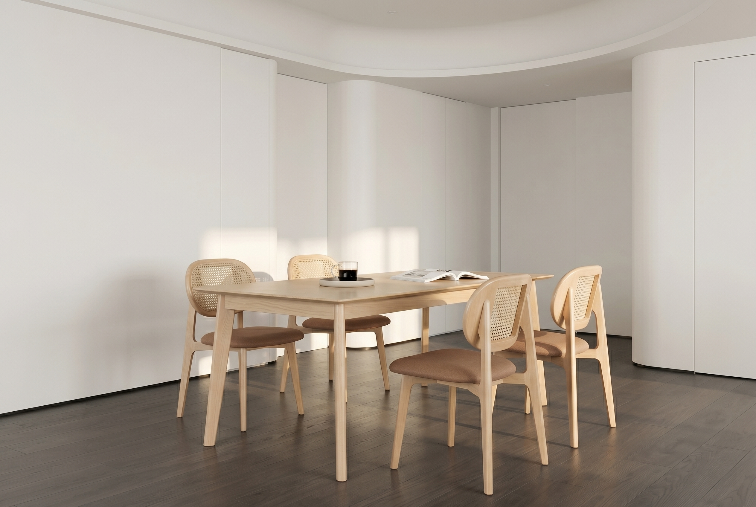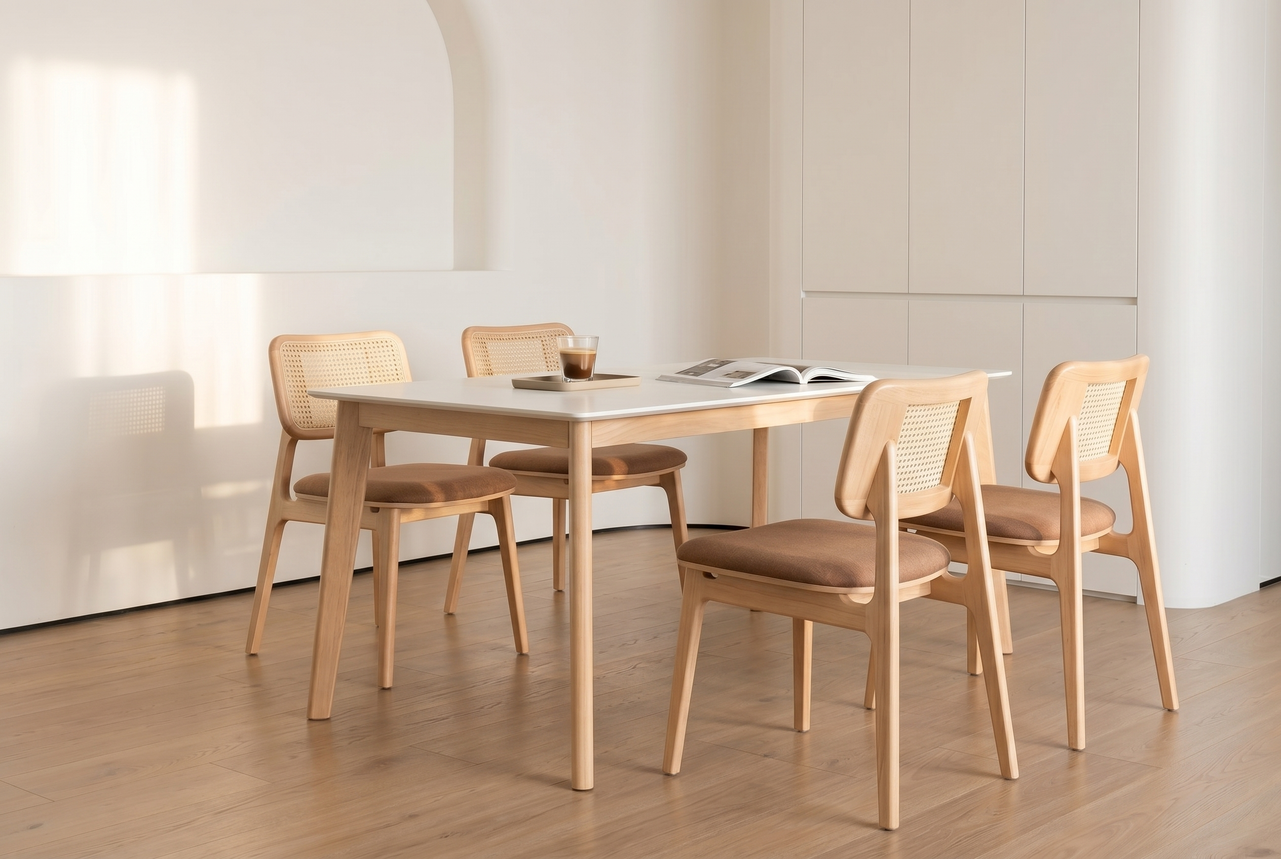 ➤ 在「實木與藤編」的黃金比例間,定義一份具備物理深度的北歐高級感。深入了解盧米系列餐椅