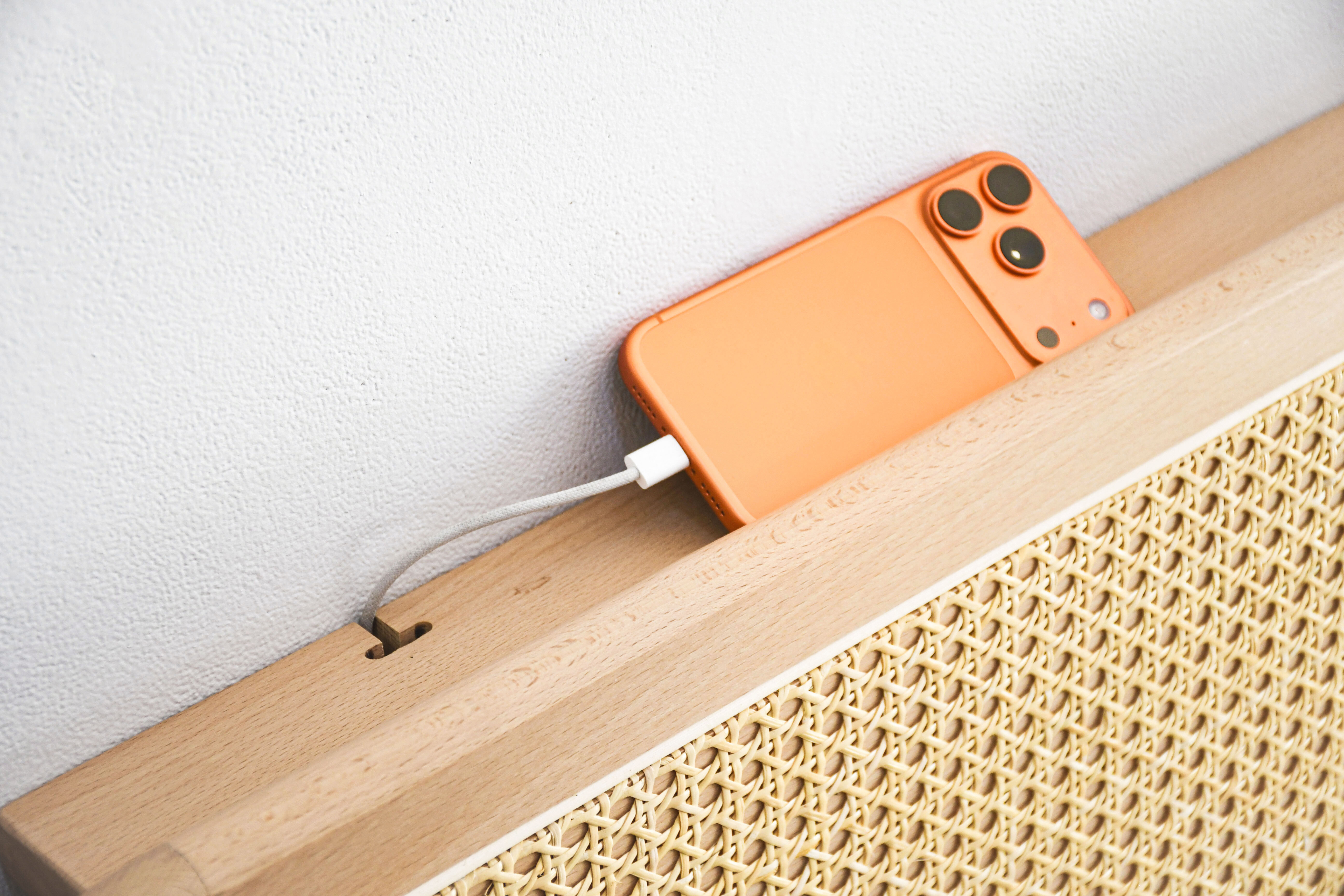 在背靠頂部預留的設計細膩溝槽,那不只是一個收納裝置,而是一個「行為的過濾器」。現代人在入睡前往往需要一個安放電子產品的物理場域,透過精確的開孔與內凹結構,讓充電線路隱匿於木質肌理之間。這種設計減少了視覺上的雜亂線條,讓使用者能在放下的那一刻,感受到資訊流的切斷,進而啟動大腦的休眠模式 。