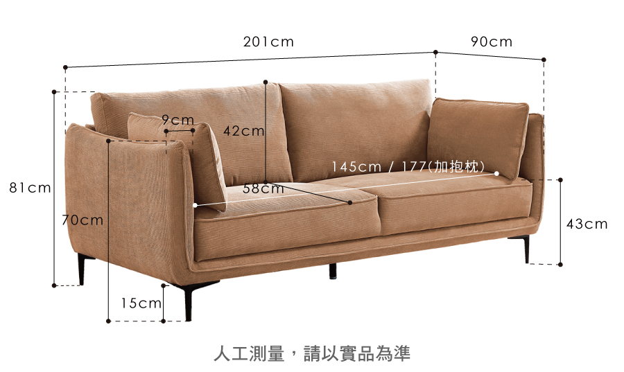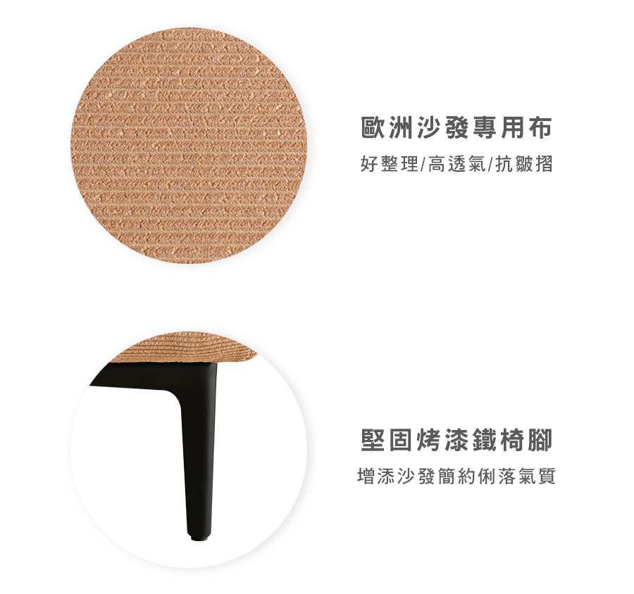 原物料:歐洲沙發專用布 / 12層內材 / 烤漆鐵腳