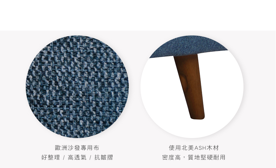 原物料:歐洲沙發專用布 / 12層內材 / ASH椅腳