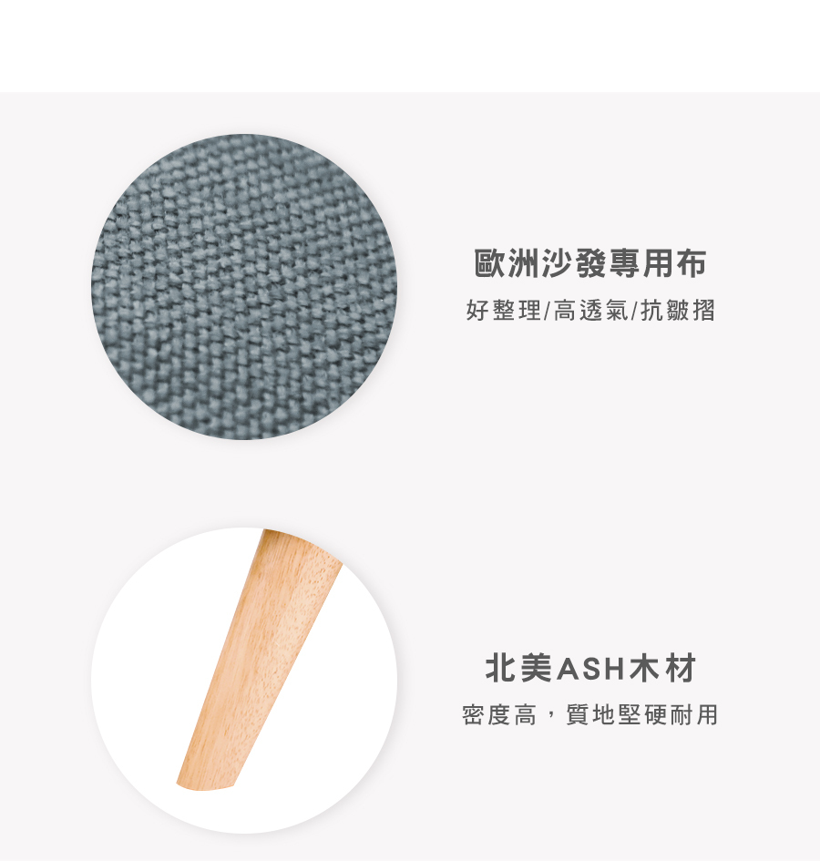 原物料:歐洲沙發專用布 / 12層內材 / ASH椅腳