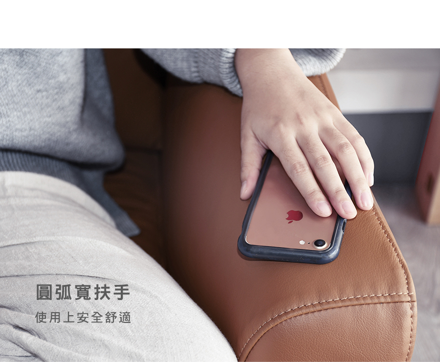 經常接觸的椅面部分,採用透氣、柔軟的荷蘭頭層牛皮,堅韌耐用,呈現自然變化;其餘部分為PVC,防止受潮及黴菌滋生