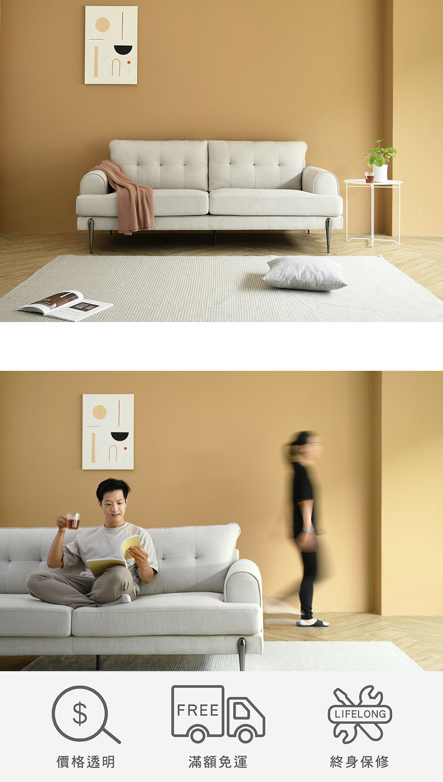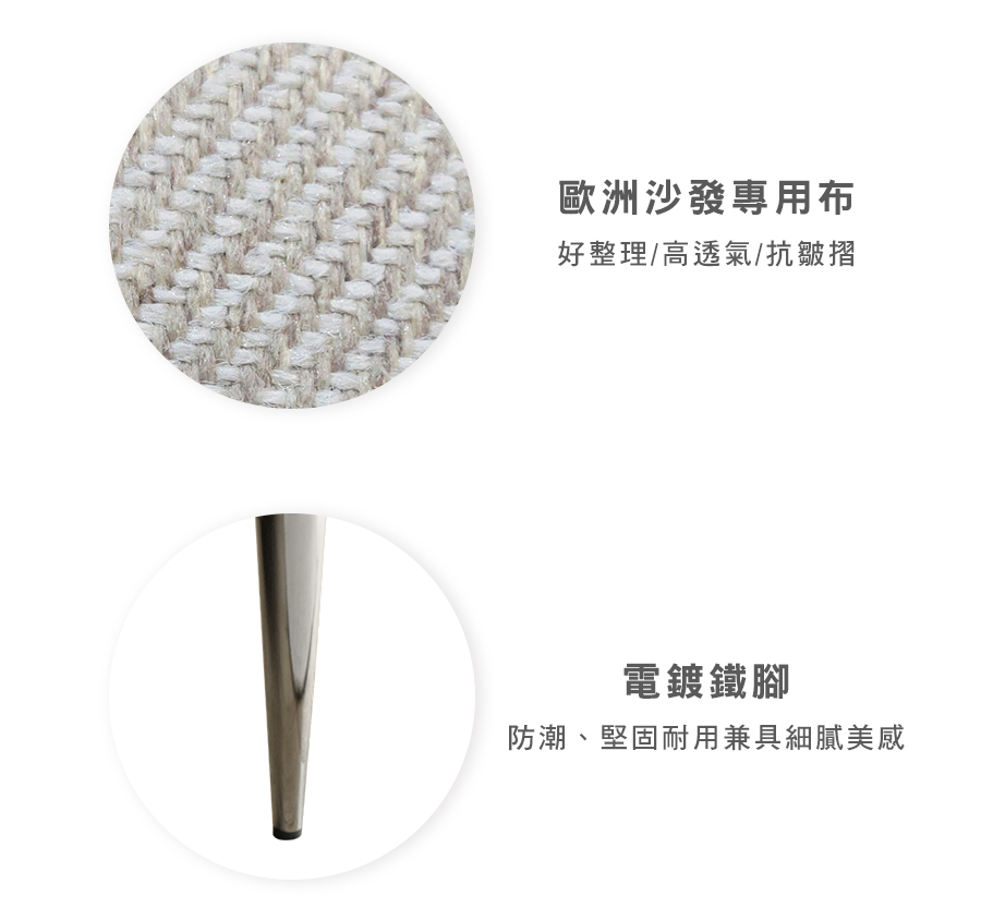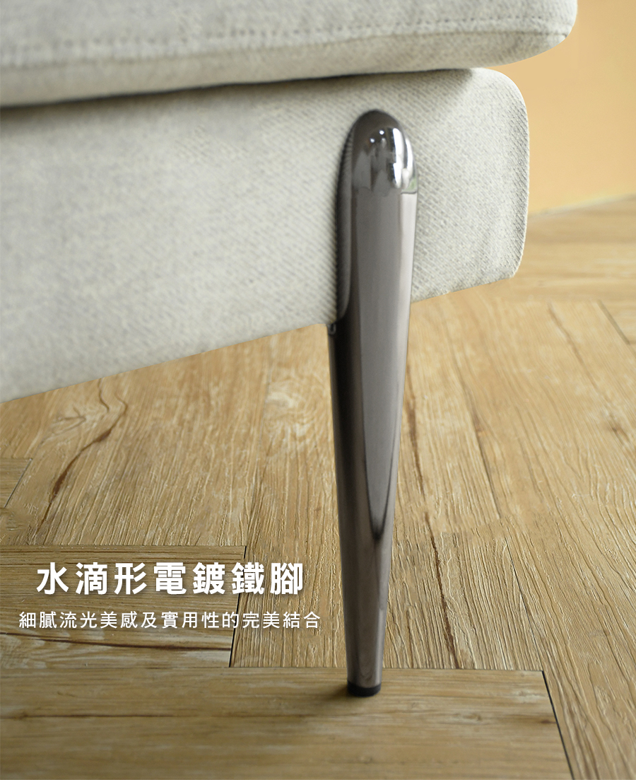 原物料:歐洲沙發專用布 / 12層內材 / 電鍍鐵腳
