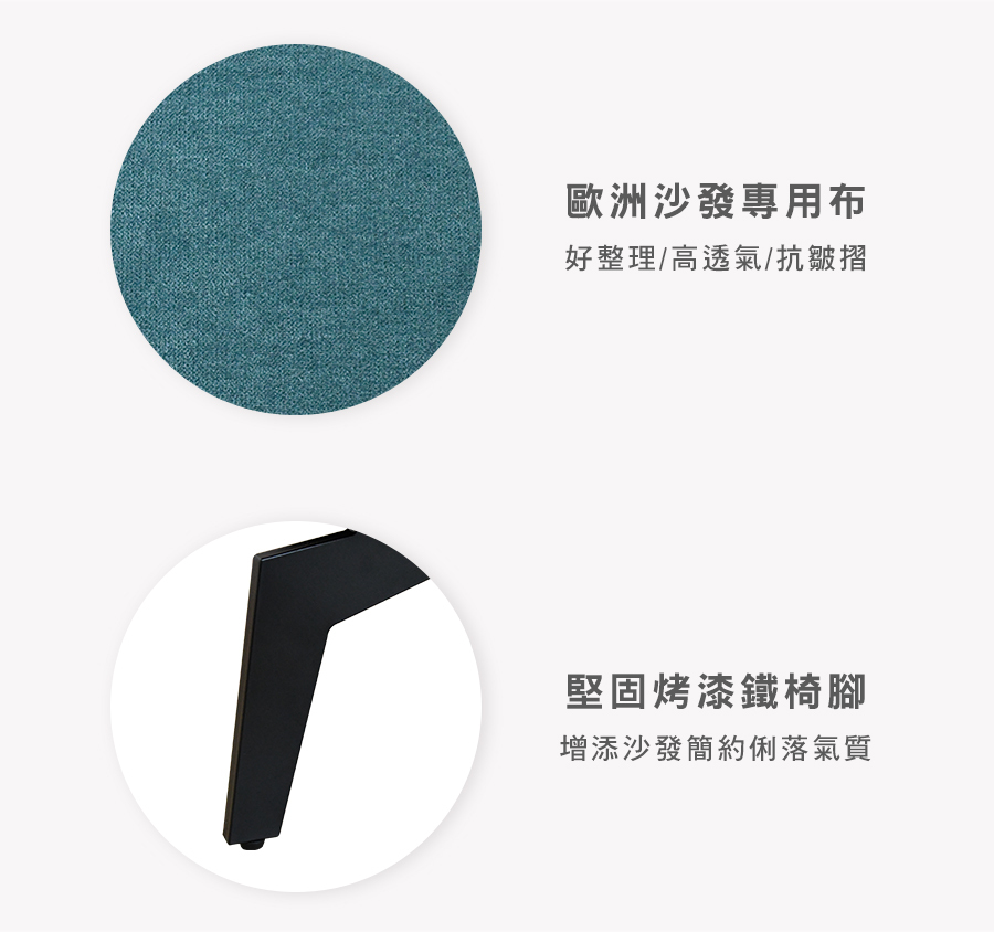 原物料:歐洲沙發專用布 / 12層內材 / 烤漆鐵腳