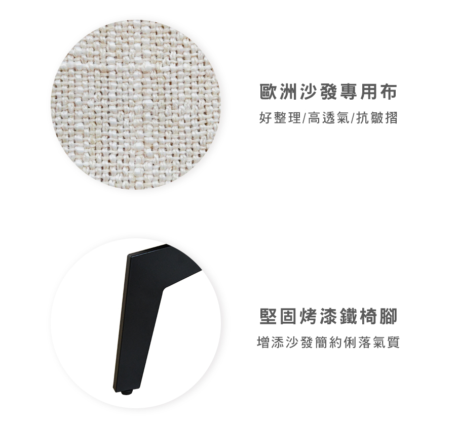 原物料:歐洲沙發專用布 / 12層內材 / 烤漆鐵腳