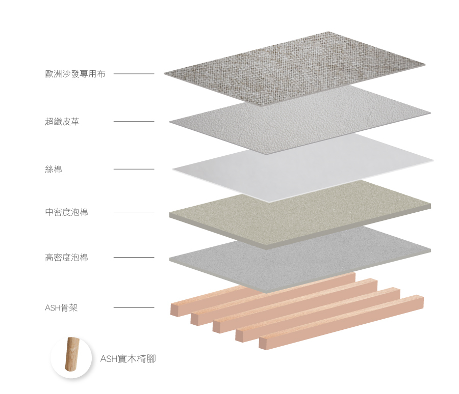 原物料:歐洲沙發專用布 / ASH椅腳 / 超纖皮革