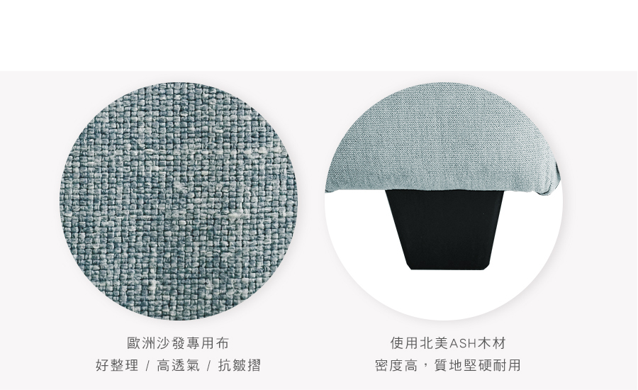 原物料:歐洲沙發專用布 / 12層內材 / ASH椅腳