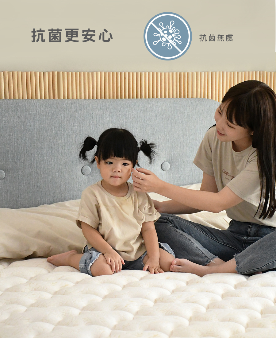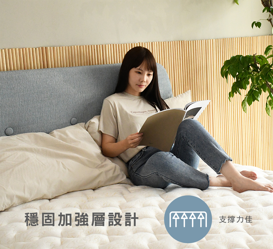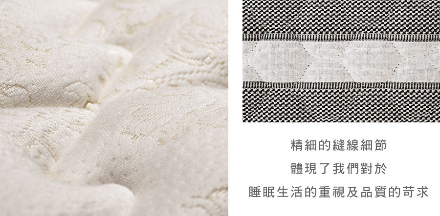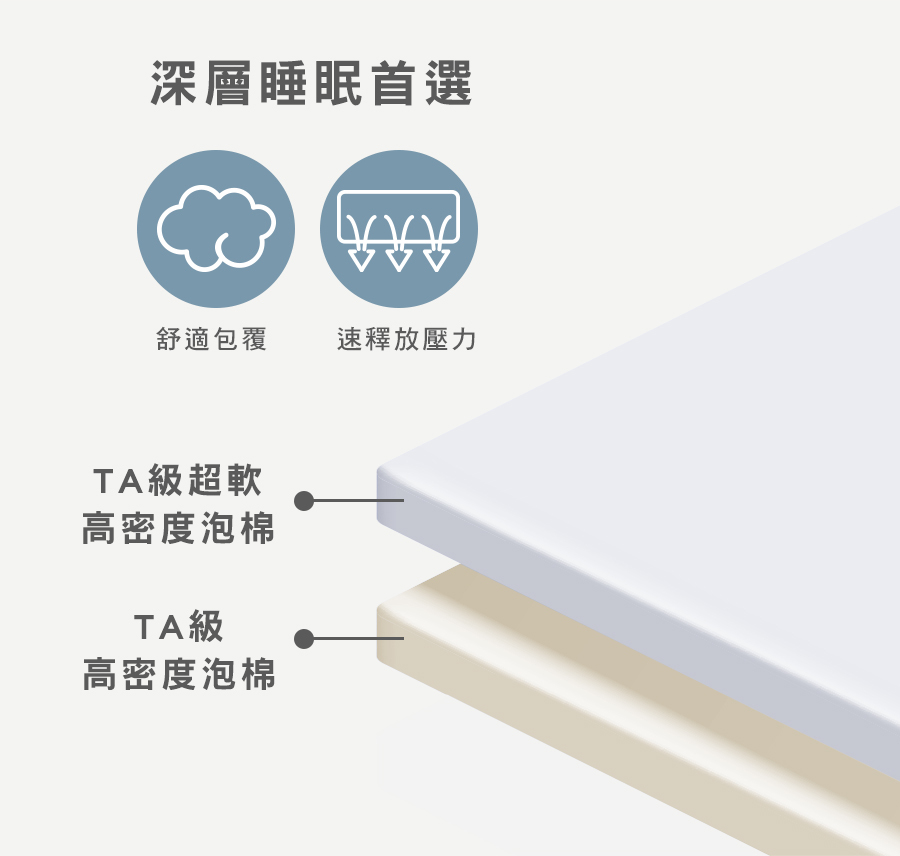 床墊頂層採2種軟硬層次TA級高密度泡棉,