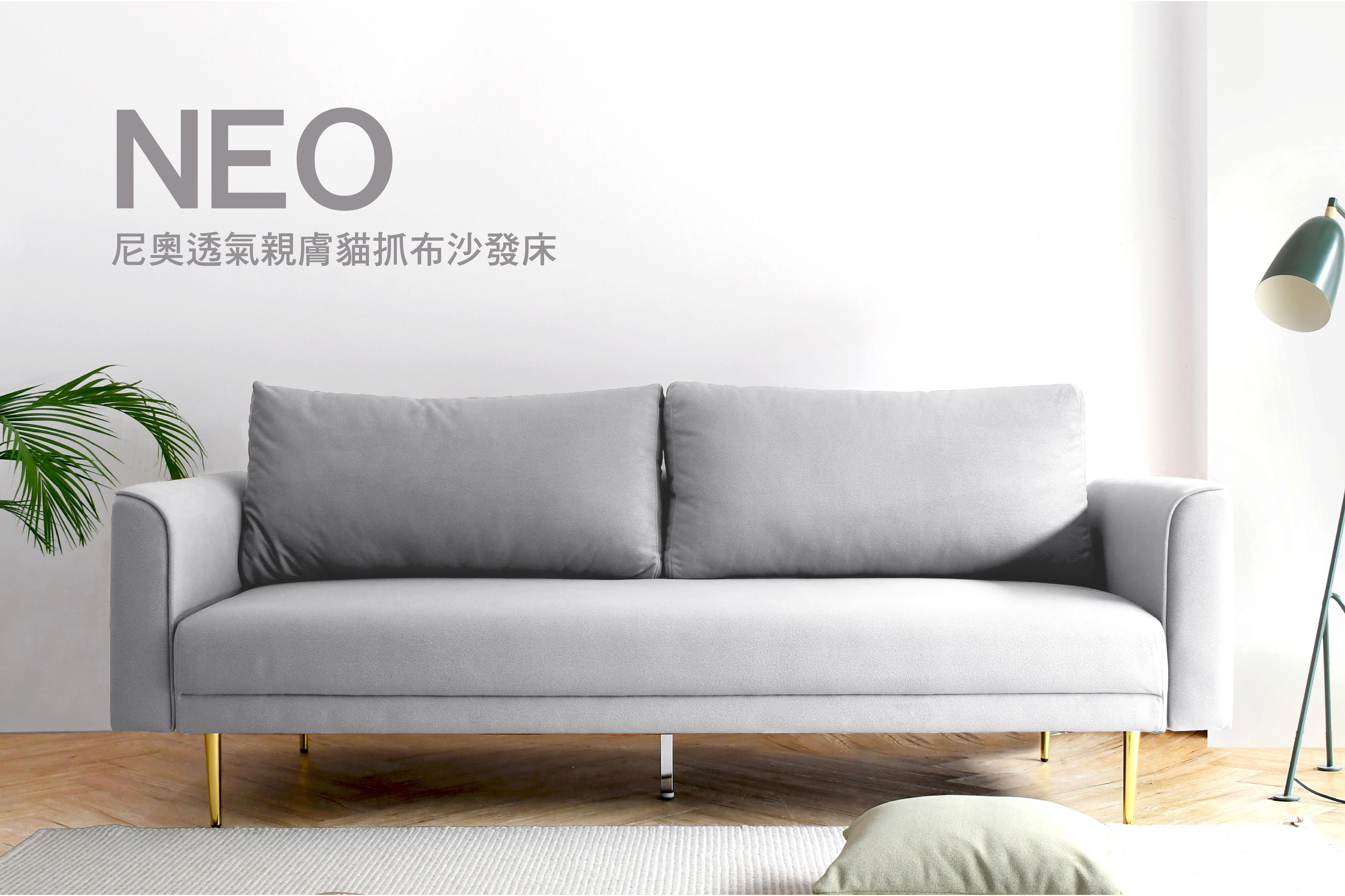 NEO-CAT-SCRATCH CLOTH-SOFABED-3-SEATER-LIGHT GRAY