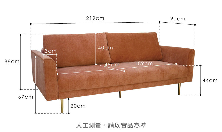 尺寸:沙發 219 x 91 x 88  cm / 沙發床 219 x 110 x 88  cm