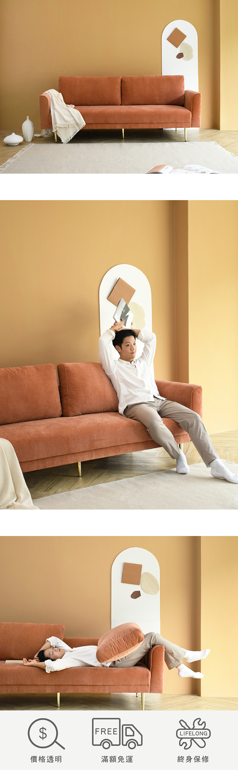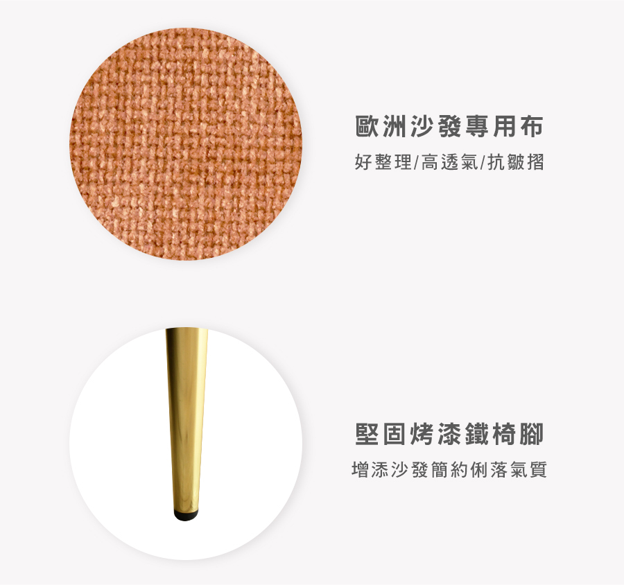 堅固金色烤漆鐵腳,營造精緻北歐輕奢氛圍