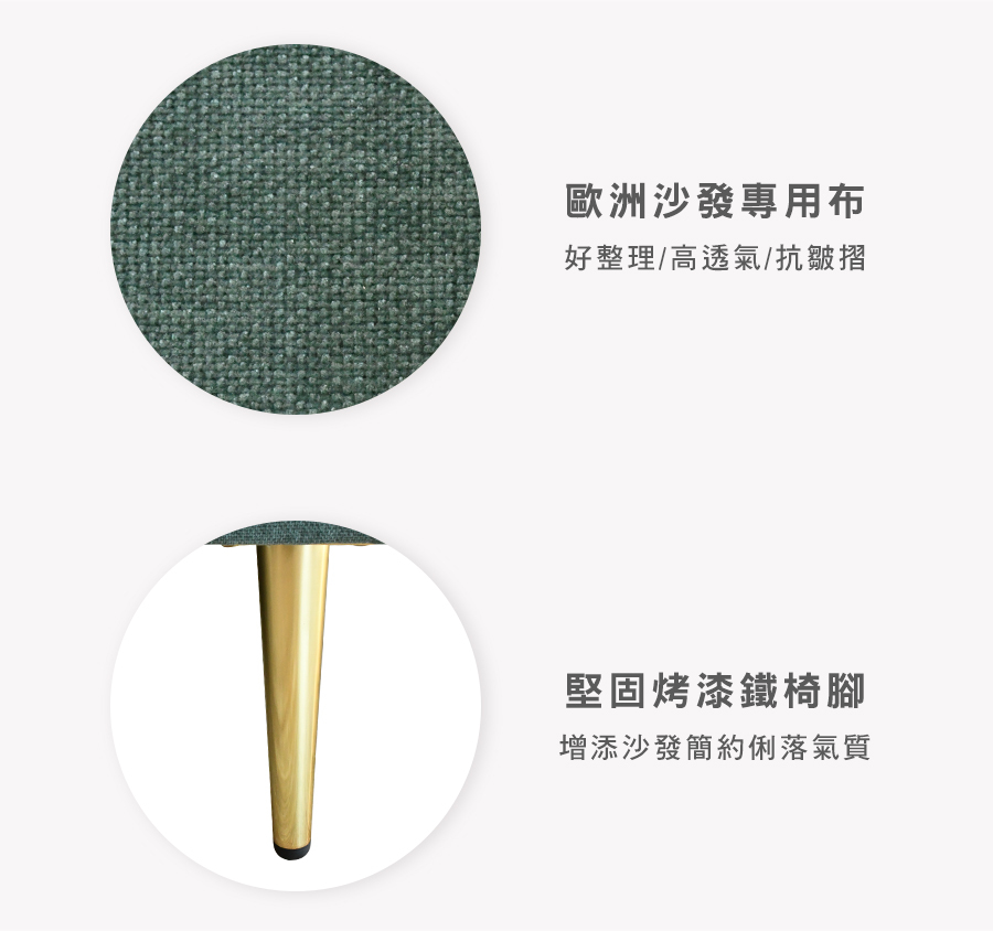 原物料:歐洲沙發專用布 / 12層內材 /  烤漆鐵腳