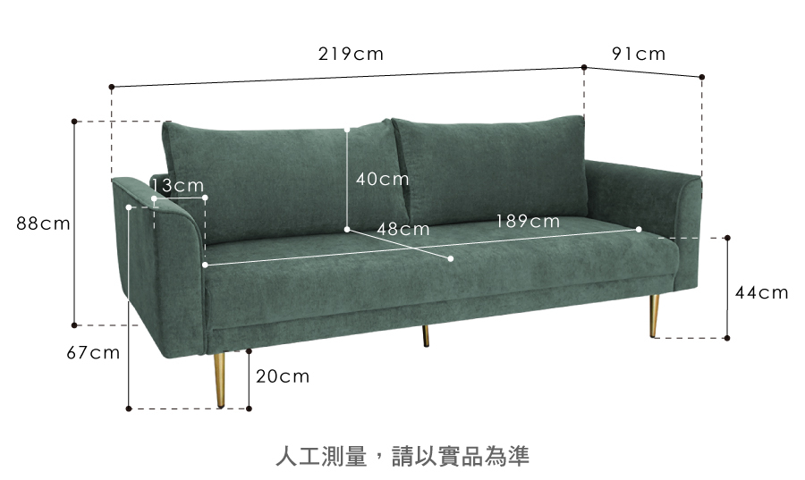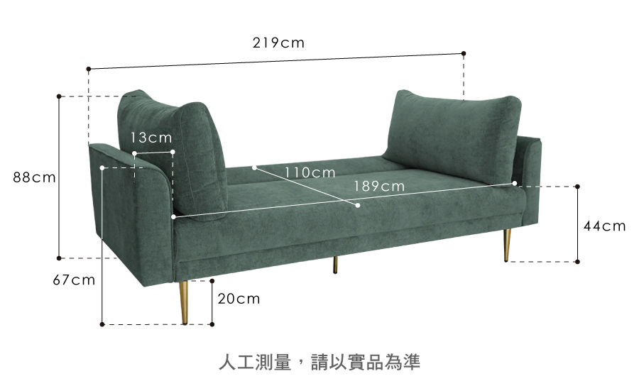 尺寸:沙發 219 x 91 x 88  cm / 沙發床 219 x 110 x 88  cm