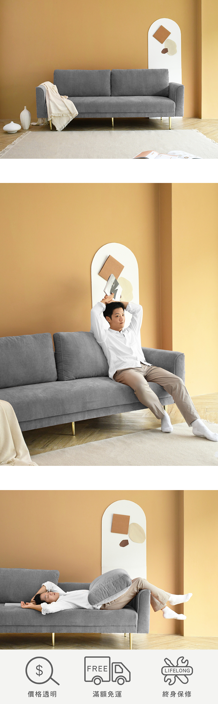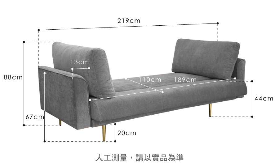 尺寸:沙發 219 x 91 x 88  cm / 沙發床 219 x 110 x 88  cm