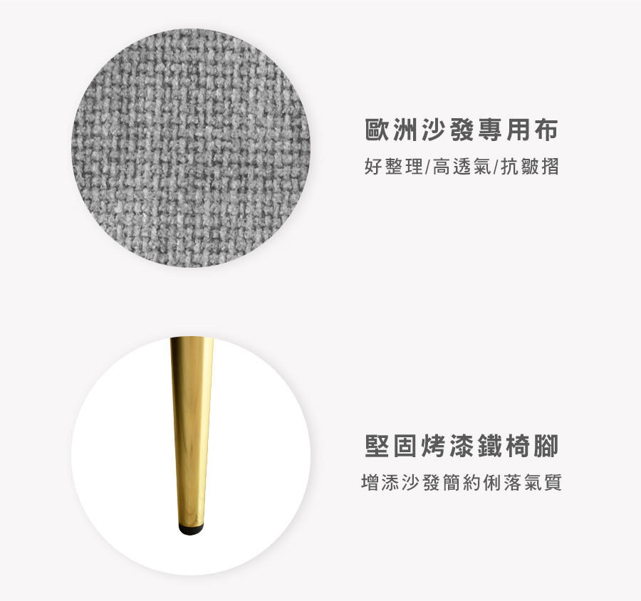 原物料:歐洲沙發專用布 / 12層內材 /  烤漆鐵腳