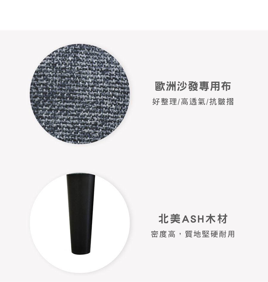 原物料:歐洲沙發專用布 / 12層內材 / ASH椅腳