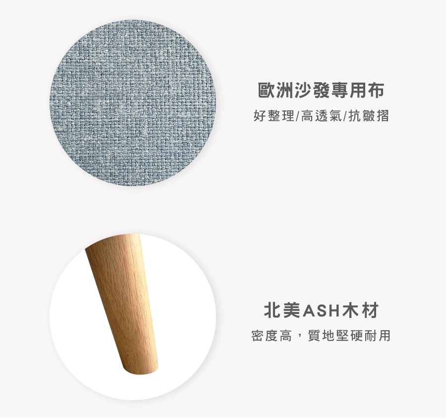 原物料:歐洲沙發專用布 / 12層內材 / ASH椅腳