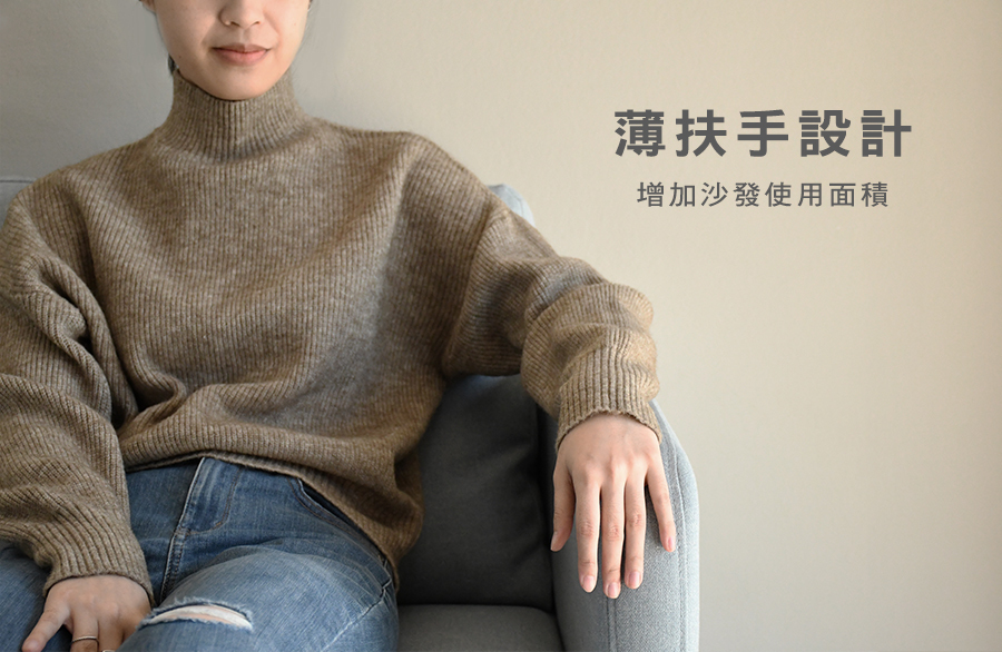 皮特沙發扶手採上下往前內縮方式,