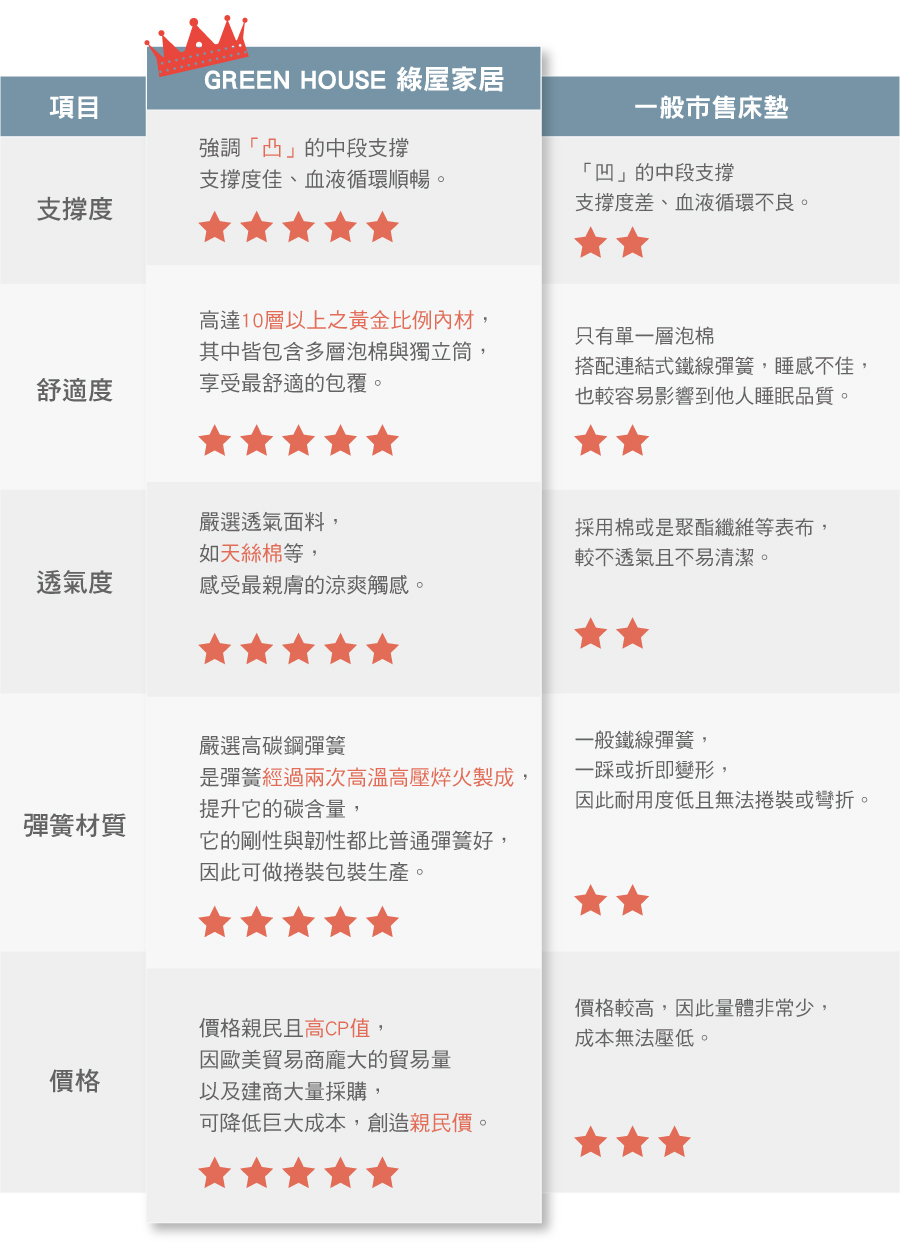 GREEN HOUSE 綠屋家居床墊結構紮實,