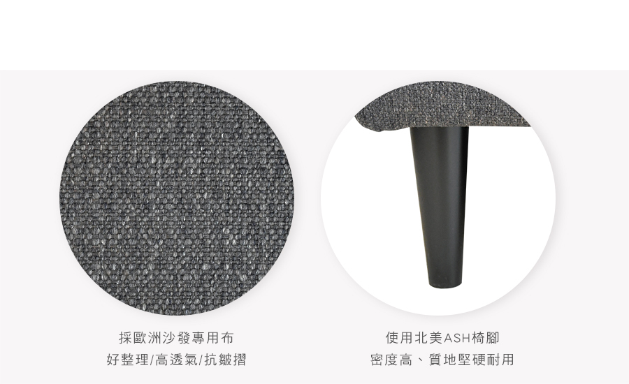 原物料:歐洲沙發專用布 / 12層內材 / ASH椅腳