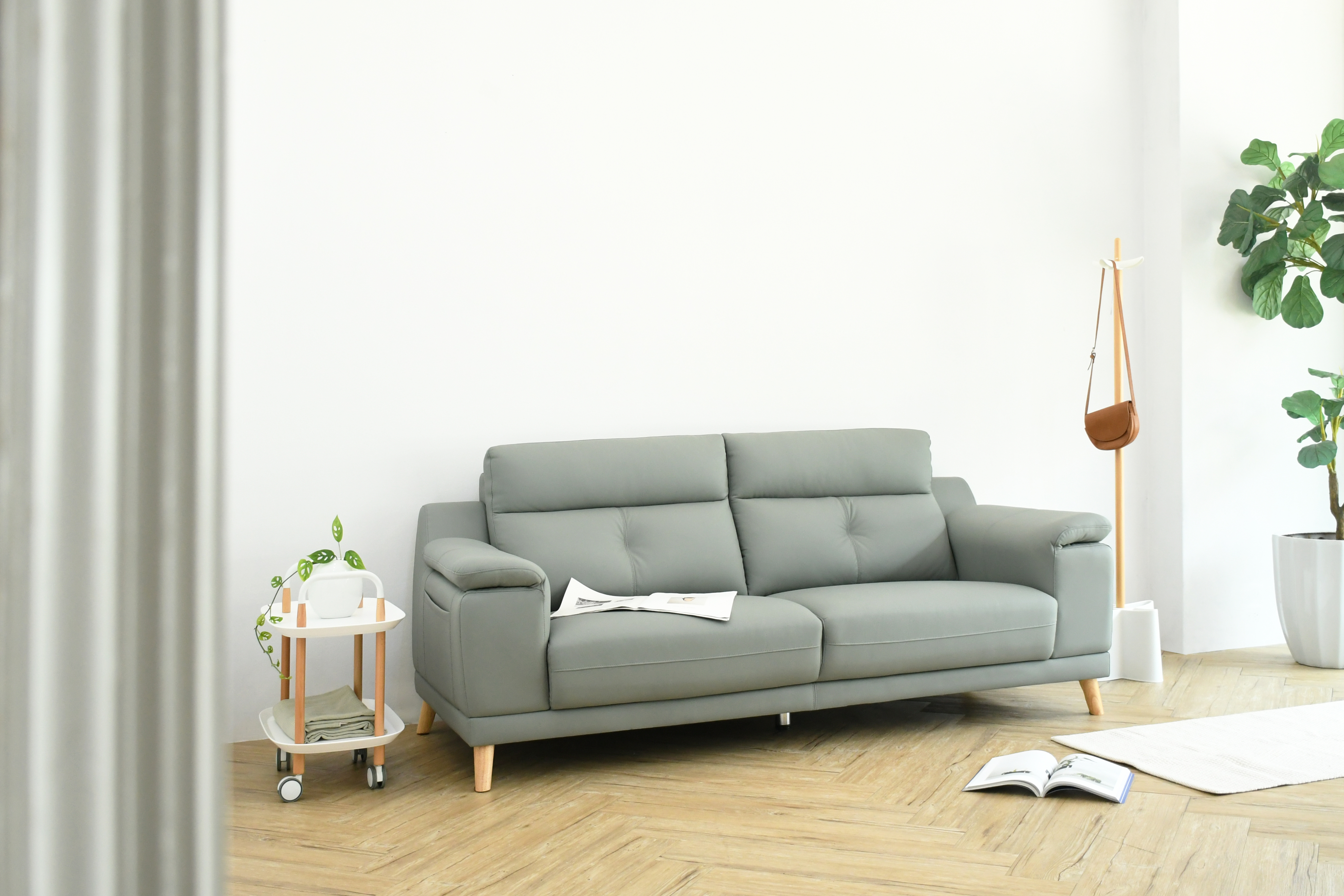 經常接觸的椅面部分,採用透氣、柔軟的荷蘭頭層牛皮,堅韌耐用,呈現自然變化;其餘部分為PVC,防止受潮及黴菌滋生