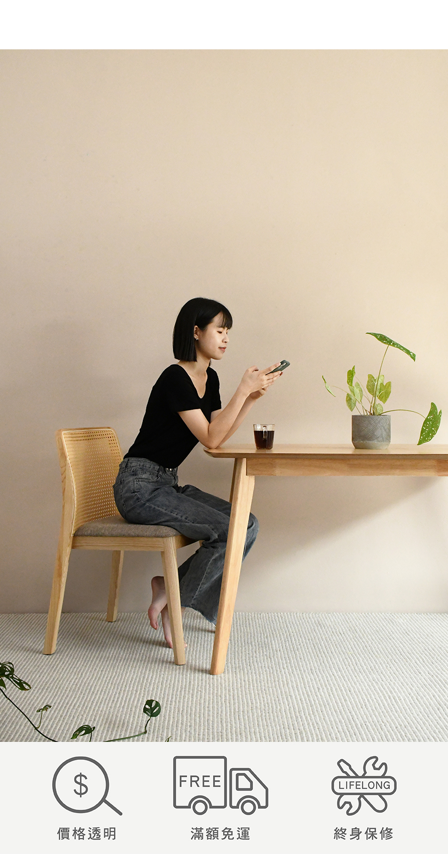 北美ASH實木及藤編材質,