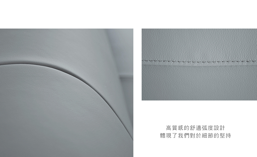 經常接觸的椅面部分,採用透氣、柔軟的荷蘭頭層牛皮,堅韌耐用,呈現自然變化;其餘部分為PVC,防止受潮及黴菌滋生