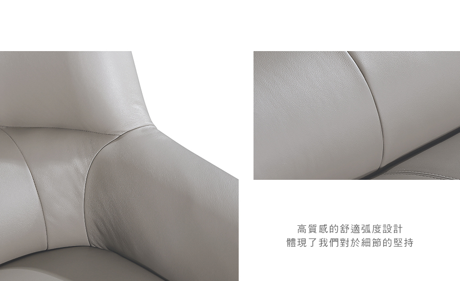 經常接觸的椅面部分,採用透氣、柔軟的荷蘭頭層牛皮,堅韌耐用,呈現自然變化;其餘部分為PVC,防止受潮及黴菌滋生