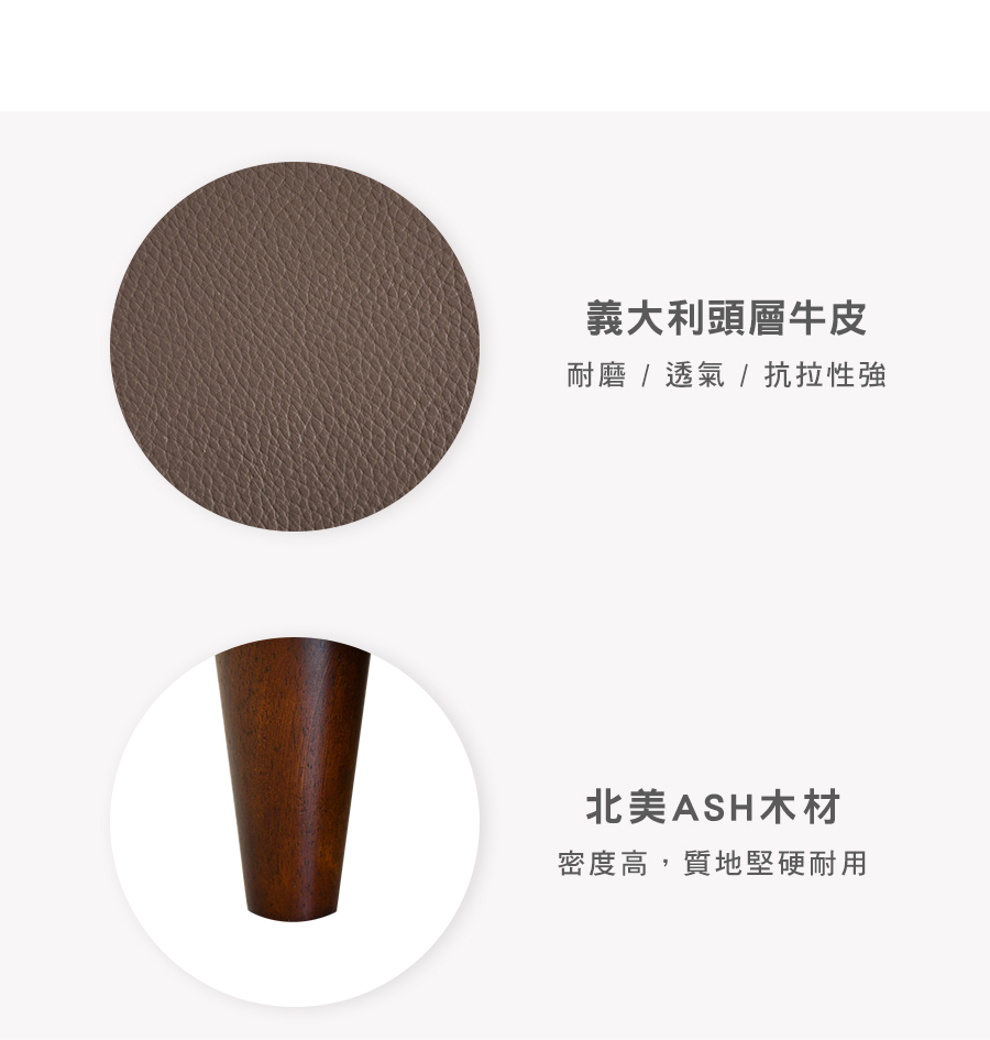 原物料:義大利頭層牛皮 / 12層內材 / ASH椅腳