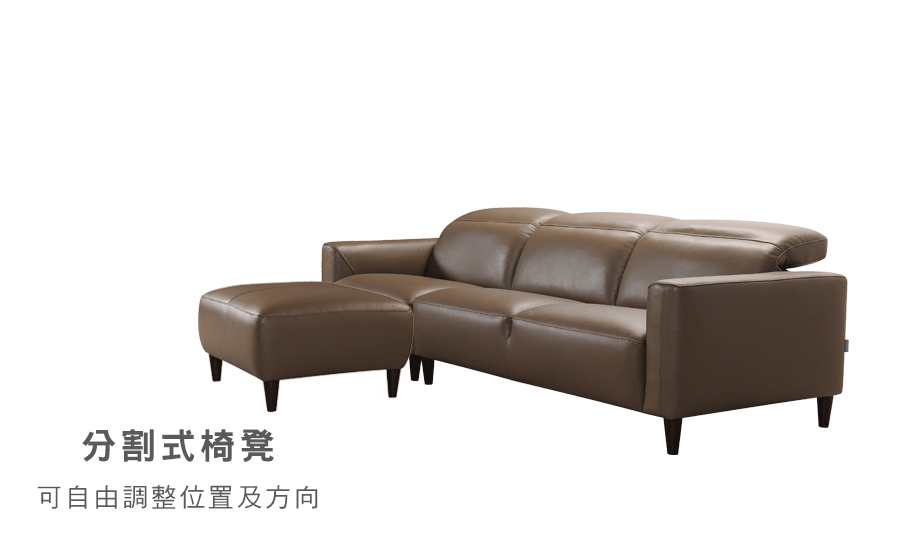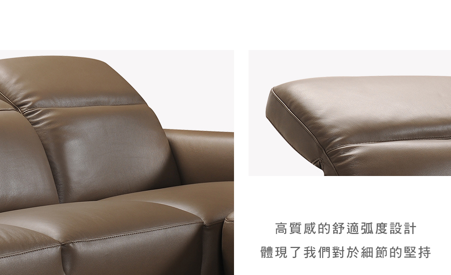 經常接觸的椅面部分,採用透氣、柔軟的義大利頭層牛皮,堅韌耐用,呈現自然變化;其餘部分為PVC,防止受潮及黴菌滋生。
