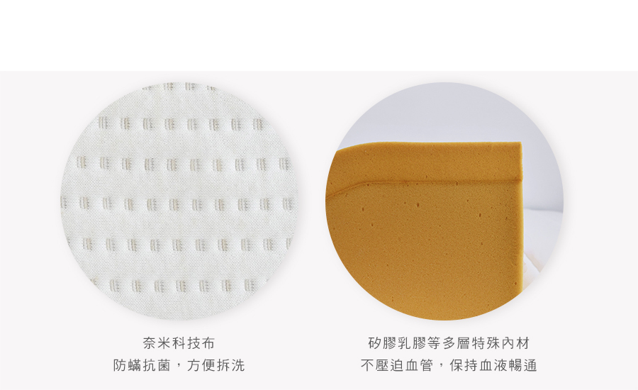原物料:奈米科技布 / 矽膠乳膠等多層特殊內材