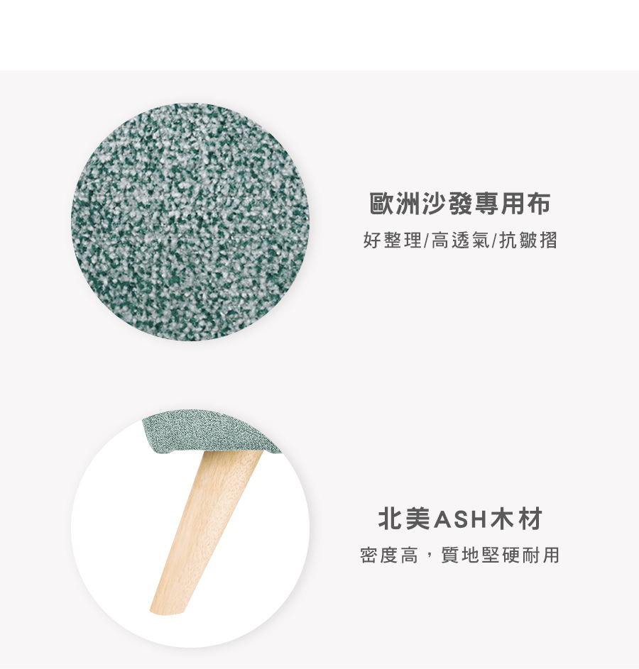 原物料:歐洲沙發專用布 / 12層內材 / ASH椅腳