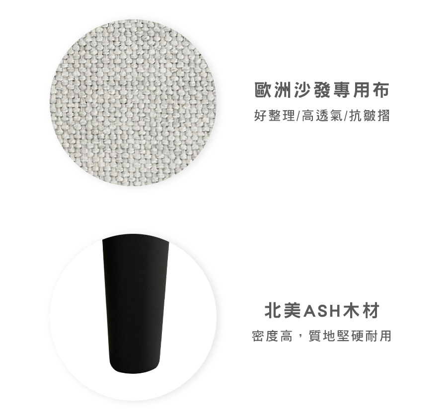 原物料:歐洲沙發專用布 / 12層內材 / ASH椅腳