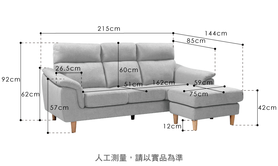 尺寸:沙發 215 x 85 x 92 / 椅凳 75 x 59 x 42 cm