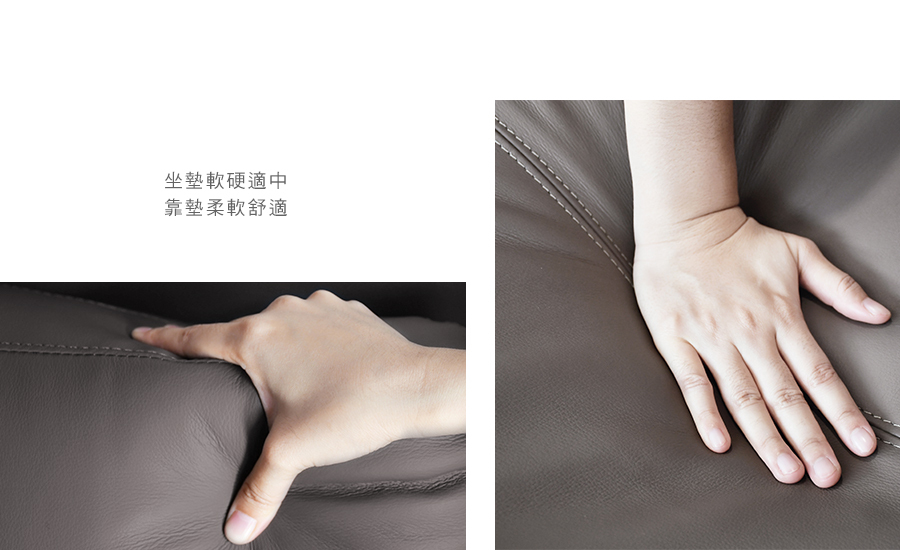 經常接觸的椅面部分,採用透氣、柔軟的荷蘭頭層牛皮,堅韌耐用,呈現自然變化;其餘部分為PVC,防止受潮及黴菌滋生