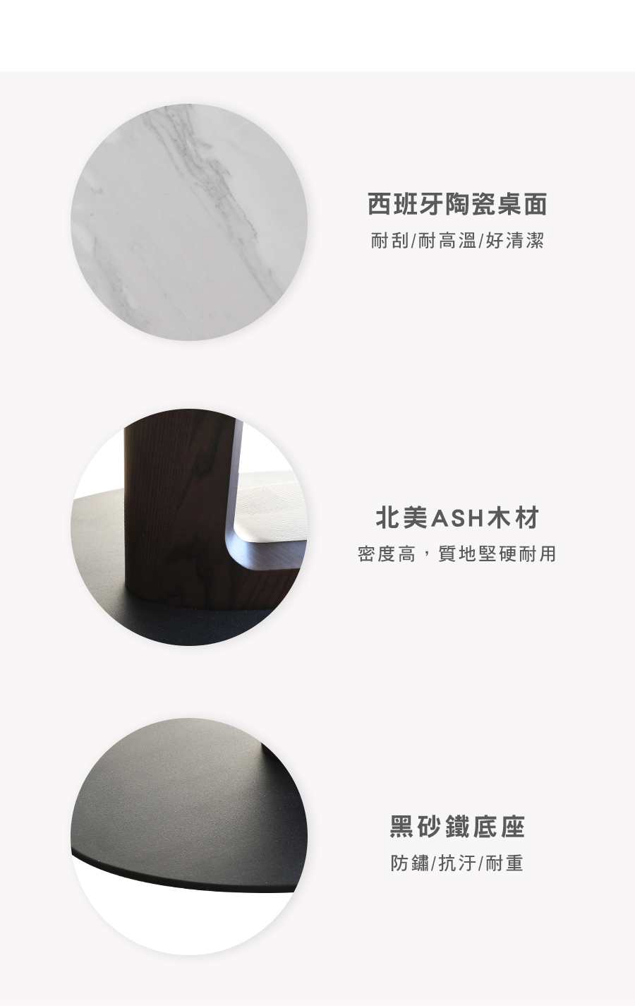 原物料:西班牙進口陶板 / ASH實木桌腳 / 黑砂鐵底座