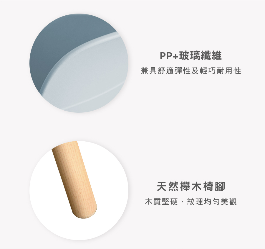 原物料:PP / 玻璃纖維 / 櫸木椅腳