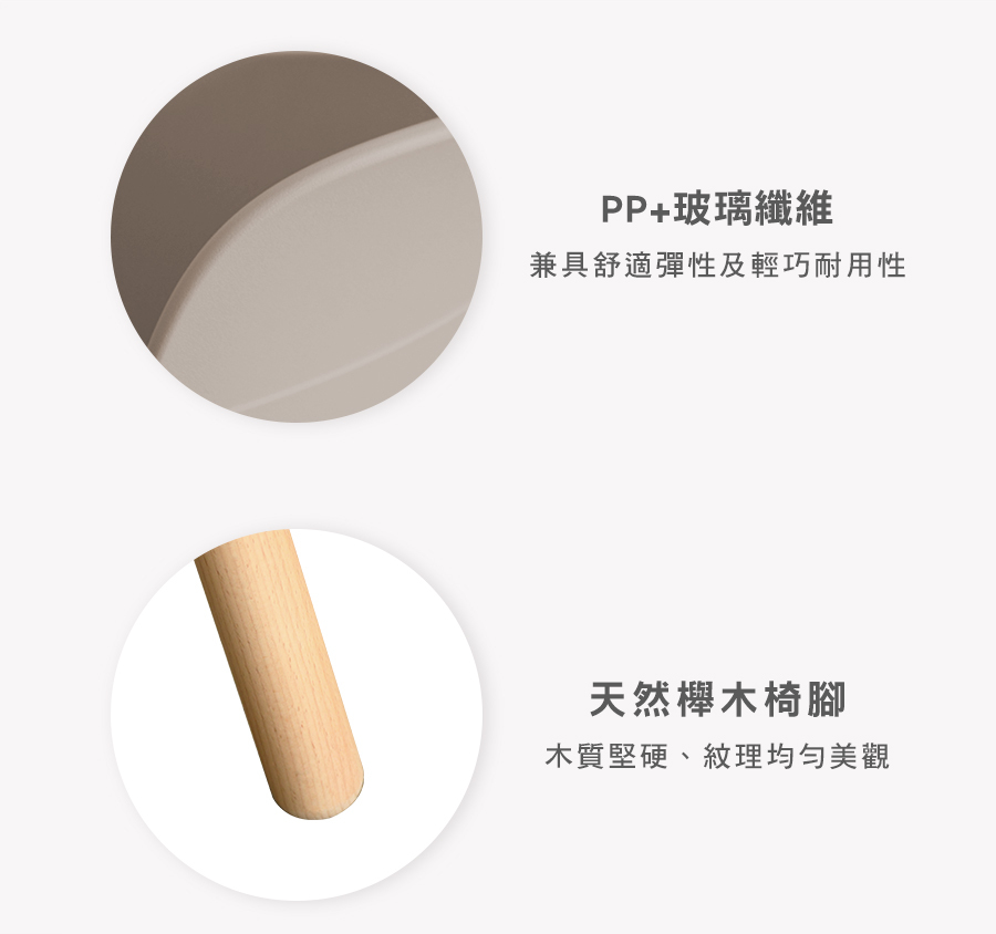 原物料:PP / 玻璃纖維 / 櫸木椅腳