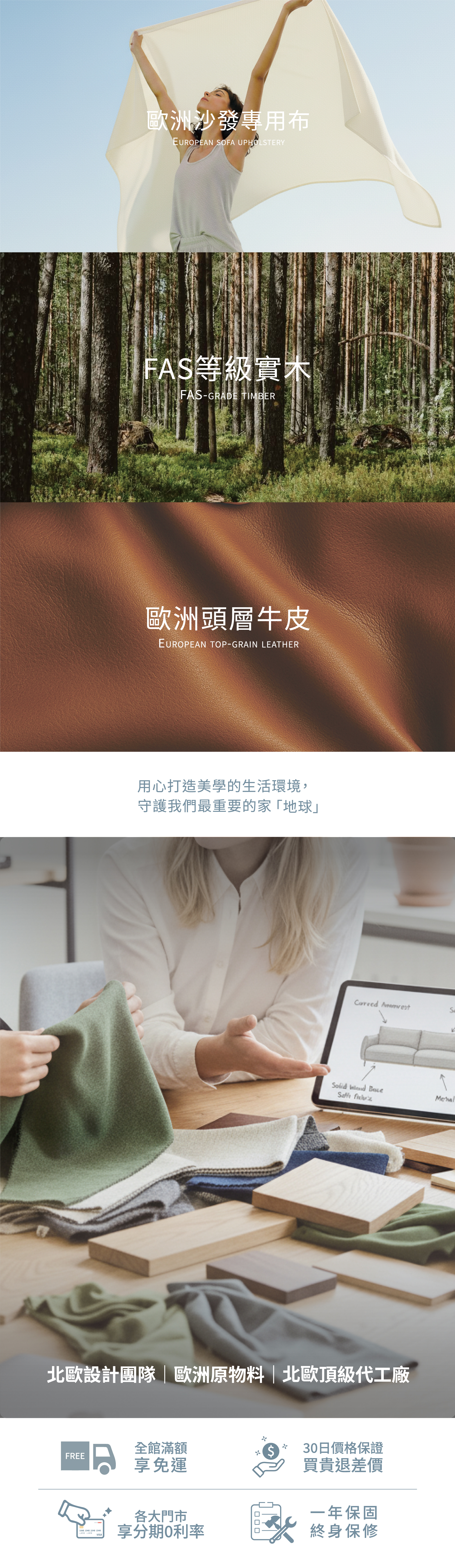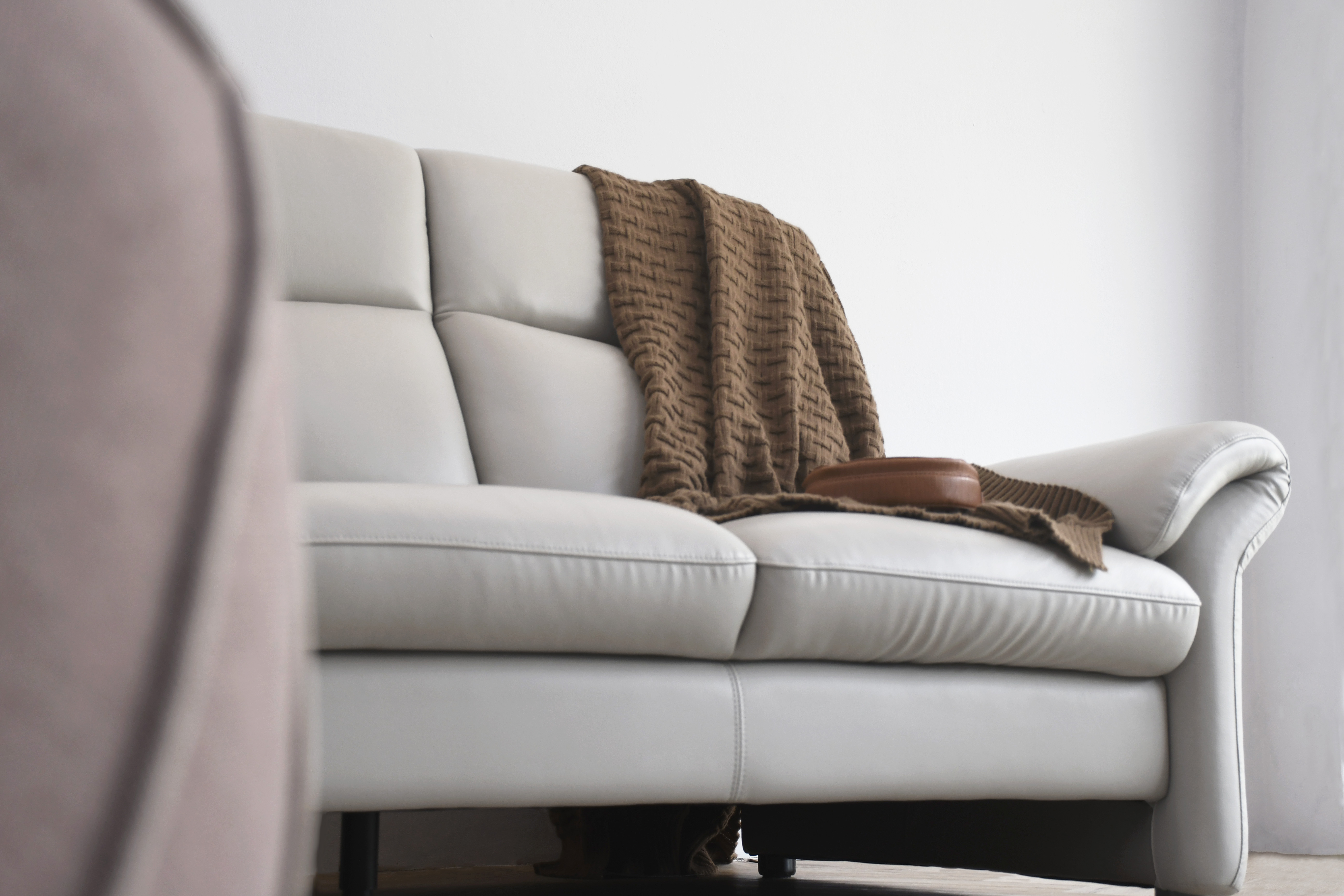 經常接觸的椅面部分,採用透氣、柔軟的義大利頭層牛皮,堅韌耐用,呈現自然變化;其餘部分為PVC,防止受潮及黴菌滋生