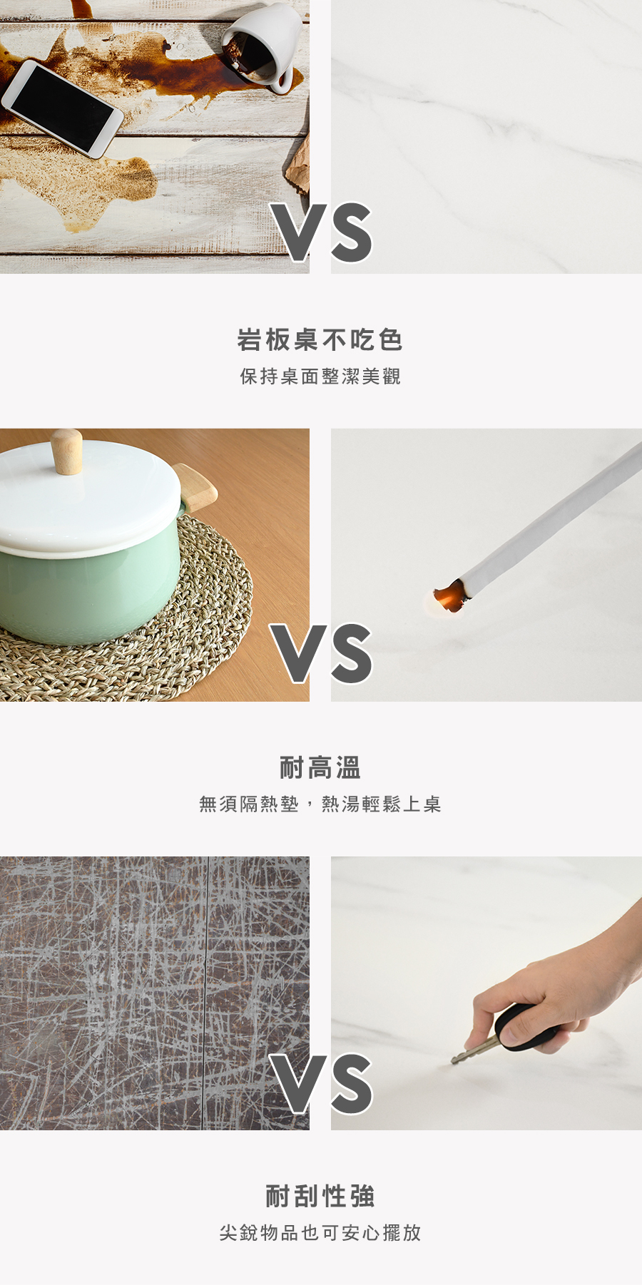 結合岩板材質耐刮耐高溫及不吃色等特性,