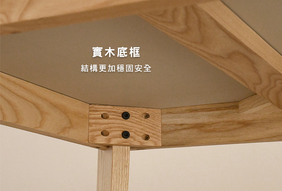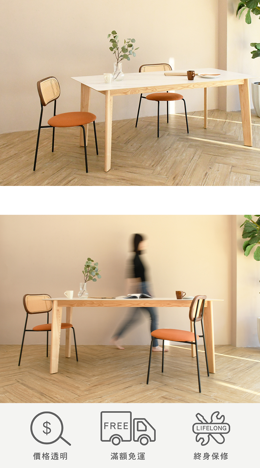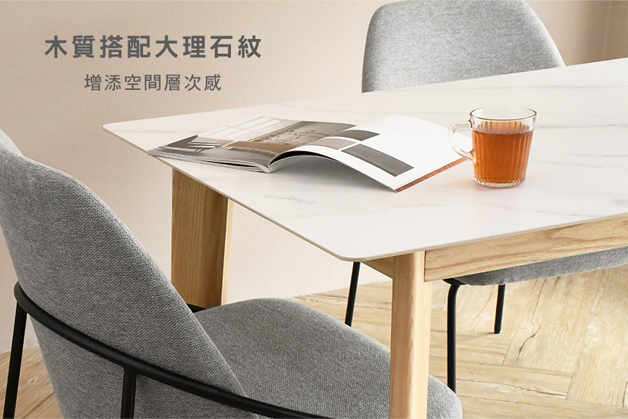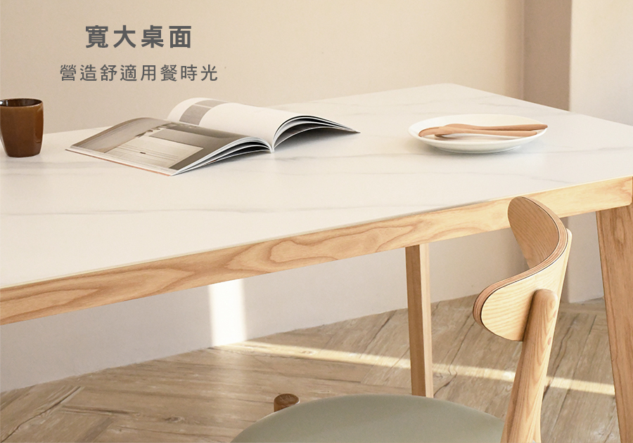 更用堅固耐用的岩板材質及ASH實木桌腳,