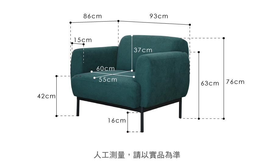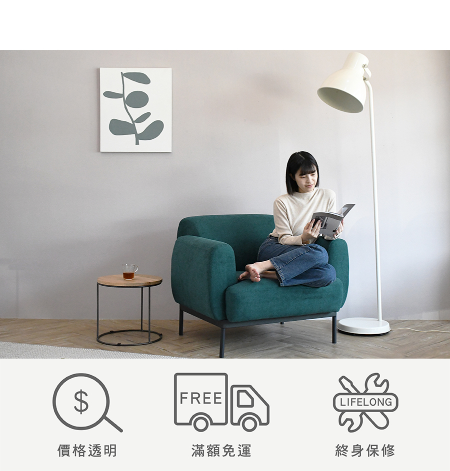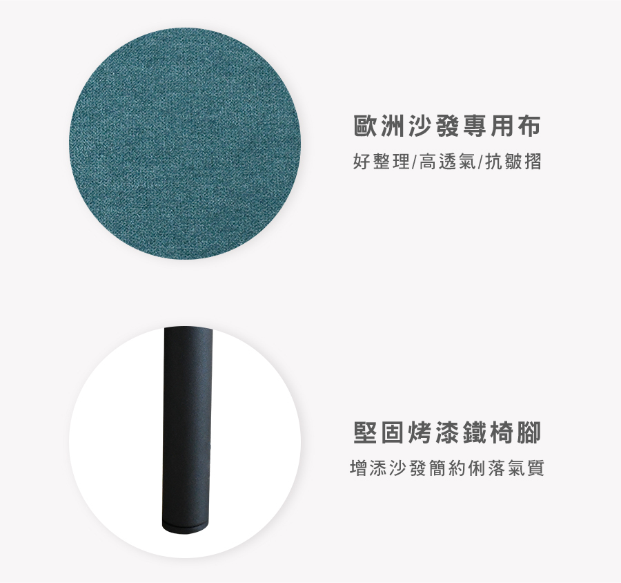 原物料:歐洲沙發專用布 / 12層內材 / 烤漆鐵腳