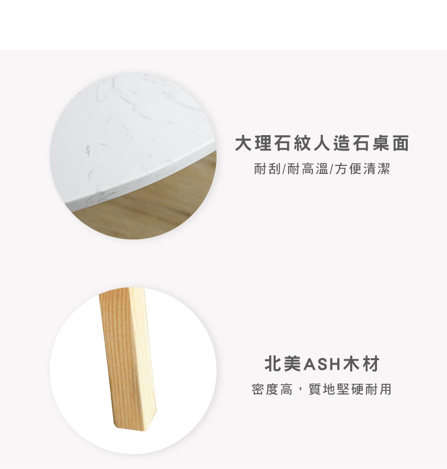 原物料:北美天然梣木(ASH) / 大理石紋人造石桌面