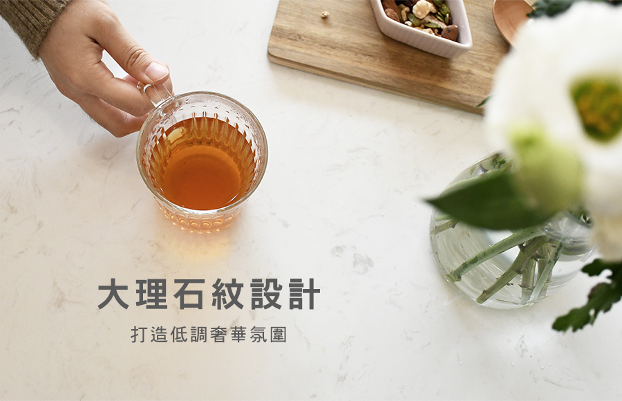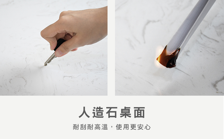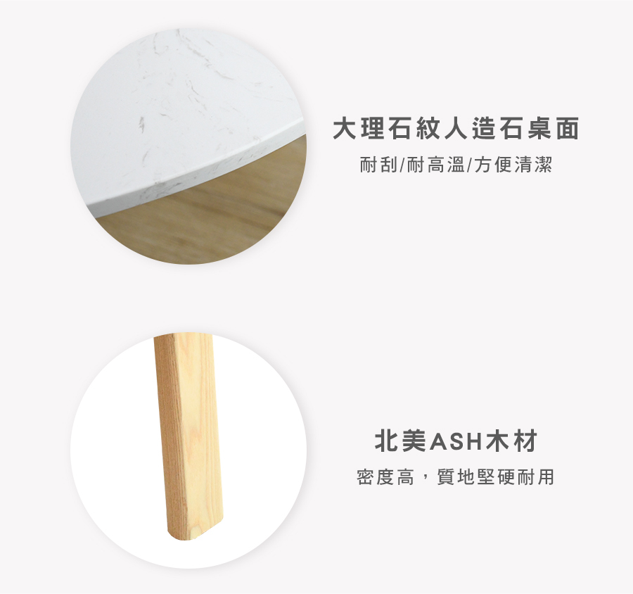 材質:北美天然梣木(ASH) / 大理石紋人造石桌面