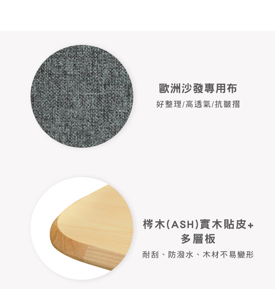 原物料:歐洲沙發專用布 / 多層板 / 梣木(ASH)實木貼皮